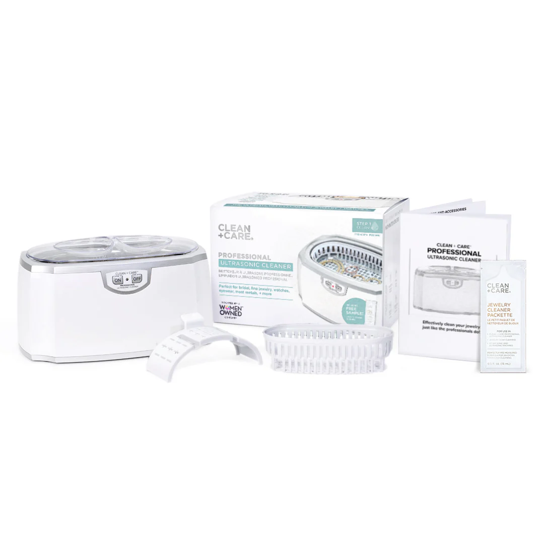 The CLEAN+CARE® Professional Ultrasonic Cleaner cleans jewelry using a wave frequency perfect for cleaning delicate and intricate jewelry. The cleaning cycle is three minutes long, and features an automatic shut-off for the perfect amount of cleaning. The ultrasonic vibrations produce sparkling results that quickly removes buildup of oils and grime from settings and hard to reach areas for an effortless and dazzling shine.